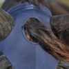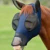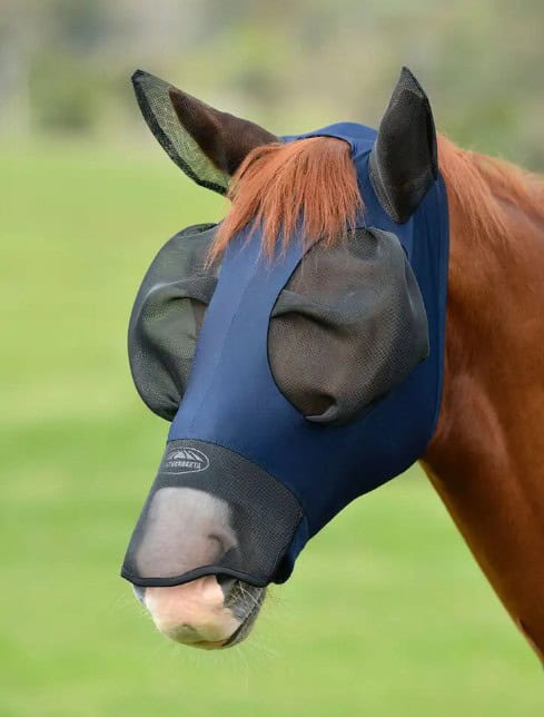 Le tissu extensible s’ajuste parfaitement à la tête du cheval et empêche les insectes de pénétrer dans le masque.
